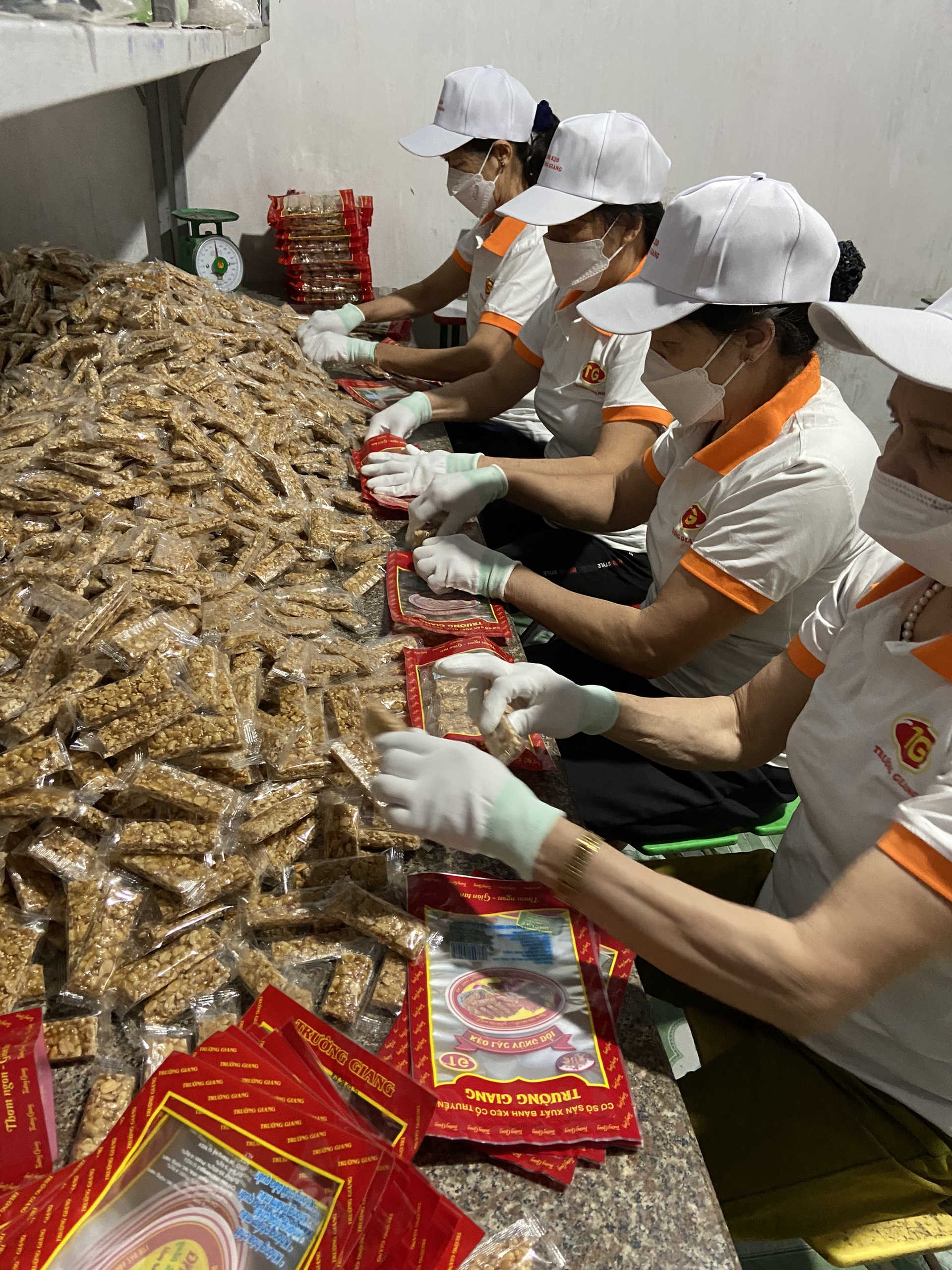 Hợp Thành quê tôi được biết đến với nhiều xưởng bánh kẹo truyền thống trong đó có bánh gai, kẹo lạc.Dựa trên cơ sở đó, năm 2000 bố tôi đã học hỏi mở lò bánh gai của gia đình, trong quá trình đi giao hàng ông thấy sản phẩm kẹo lạc được người tiêu dùng ưa chuộng. Ông quyết định làm thêm sản phẩm kẹo lạc với thương hiệu kẹo lạc Trường Giang. Với phương châm chất lượng quyết định thương hiệu, kẹo lạcTrường Giang dần khẳng định được vị thế trên thị trường và được người dân tin tưởng vào chất lượng cũng như nguồn gốc xuất xứ của sản phẩm.Năm 2018, do tuổi cao ông có ý định truyền lại nghề cho thế hệ sau. Khi đó tôi và chồng tuy đã có công việc ổn định nhưng vì không muốn nghề truyền thống của gia đình bị mai một cũng như công sức của bố mẹ bao năm gây dựng nên thương hiệu bị uổng phí. Nhận thấy thị trường bánh kẹo truyền thống rất có triển vọng vì người dân Việt Nam có nét văn hóa nhớ về cội nguồn, trong khi thị trường có rất nhiều loại bánh kẹo mới được làm ngon và bắt mắt, nhưng khi nhâm nhi chén nước trà và thưởng thức chiếc kẹo lạc lại đi vào tiềm thức của con dân nước Việt, dù trong nước hay với những người con xa xứ.Vận dụng những kiến thức học được trên ghế nhà trường chuyên ngành kinh tế và chồng tôi được đào tạo ngành kỹ sư điện cùng với kinh nghiệm thực tiễn những năm đi làm, hai vợ chồng đã áp dụng vào sản xuất và kinh doanh kẹo lạc của gia đình.Từ những máy móc thô sơ, thủ công, chồng tôi đã cải tiến, chế tạo ra những động cơ chạy bằng điện hay thế sức lao động con người. Bên cạnh đó còn đầu tư thêm một số máy tự động nể nâng cao năng suất lao động.Về phần tôi đã tìm hiểu và mở rộng chiến dịch quảng cáo trên các trang mạng xã hội từ đó tìm thêm được khách hàng ngoại tỉnh. Với mục tiêu mở rộng quy mô, nâng cao chất lượng, phát triển thị trường tôi đã tìm tòi những nguồn nguyên liệu chọn lọc mang đến cho khách hàng những chiếc kẹo thơm ngon, giòn tan. Năm 2022 tôi đã tìm tòi và phát triển thêm sản phẩm mới là thanh gạo lứt dành cho những người có bệnh lý nền như tim mạch, tiểu đường, người ăn kiêng và được người tiêu dùng đón nhận.Với sức trẻ, nhiệt huyết và quyết tâm, chúng tôi đã, đang và sẽ phát triển thương hiệu bánh kẹo Trường Giang ngày một lớn mạnh. Mang thương hiệu kẹo lạc quê hương đến khắp các tỉnh thành trong cả nước. Mục tiêu trong những năm tiếp theo là đẩy mạnh chiến dịch marketing để tăng sản lượng đầu ra và tạo thêm nhiều việc làm cho nhiều lao động địa phương.